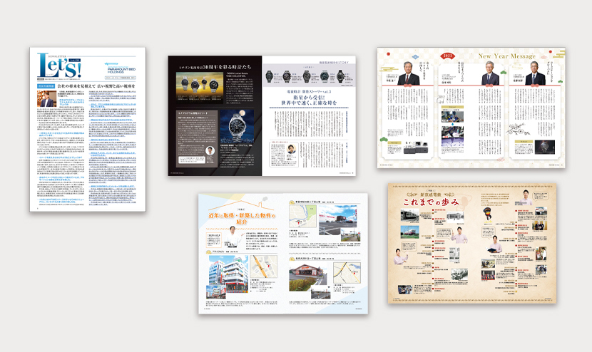 弊社では30年以上続けて頂いている社内報があります。社内向けステークホルダーとして社員の士気を上げる親しみやすいデザインを心がけています。